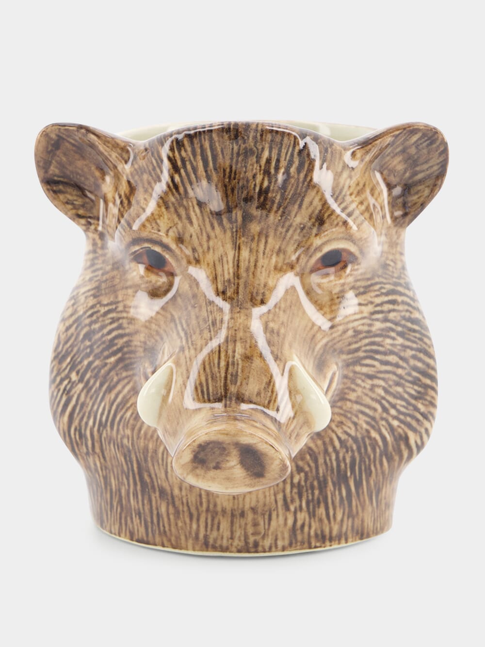 Quail Ceramics wild boar pencil pot in handpainted stoneware.