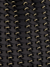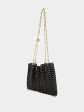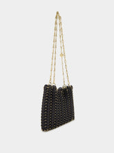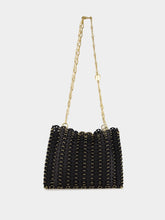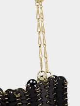 The iconic 1969 bag, crafted from black calfskin pastilles, exudes timeless elegance. Featuring a luxurious gold metallic chain adorned with the 'Rabanne' logo, this versatile bag offers multiple carrying options: hand, shoulder, or crossbody, making it a perfect companion for any sophisticated occasion.