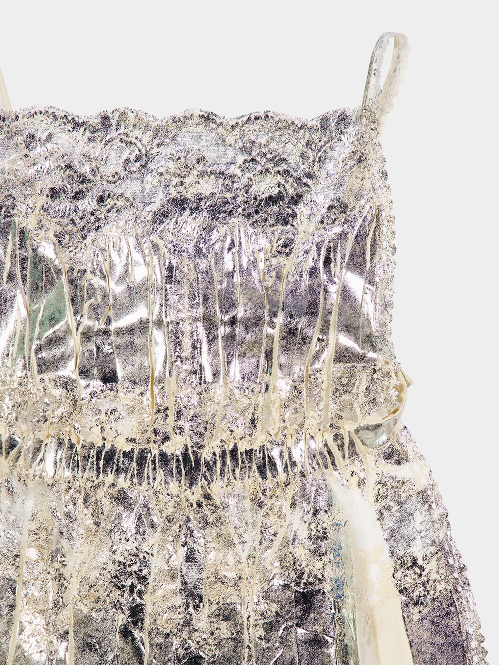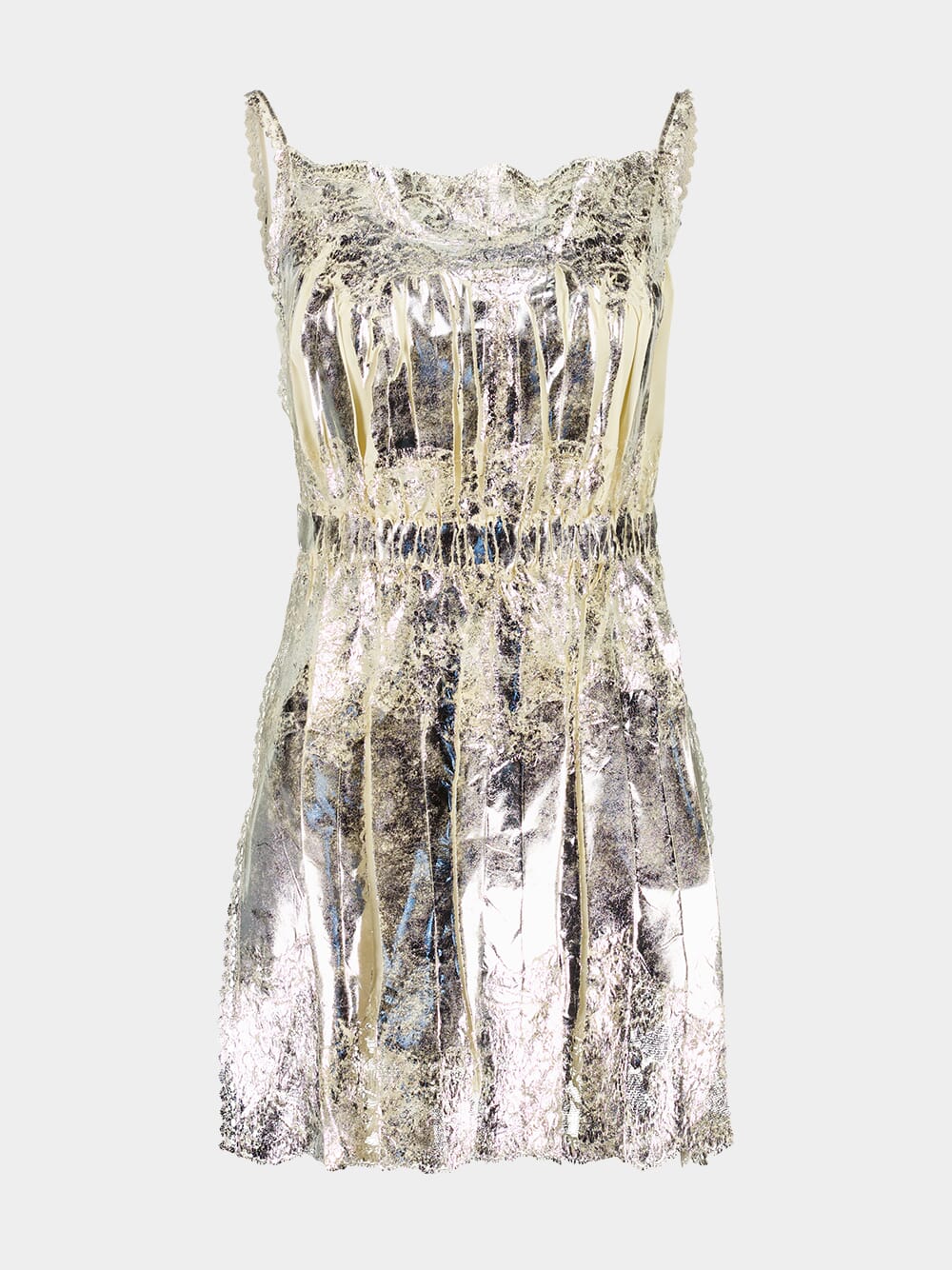 This champagne gold metallic mini dress exudes modern elegance with its sleek design and adjustable straps. Crafted from 100% polyester, it offers a comfortable yet structured fit, making it perfect for any occasion where you want to make a statement. Made in Portugal, this dress combines sophistication with a touch of boldness, ideal for both daytime and evening events.