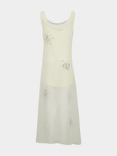 Minimalism with a refined edge, this Rabanne midi dress is crafted in smooth ivory acetate for a fluid, elegant drape. The sleeveless cut and classic crew neckline create a clean silhouette that enhances the natural flow of the fabric. Subtle and sculptural, it captures Rabanne’s modern sophistication—ideal for both understated daywear and elevated evening styling.