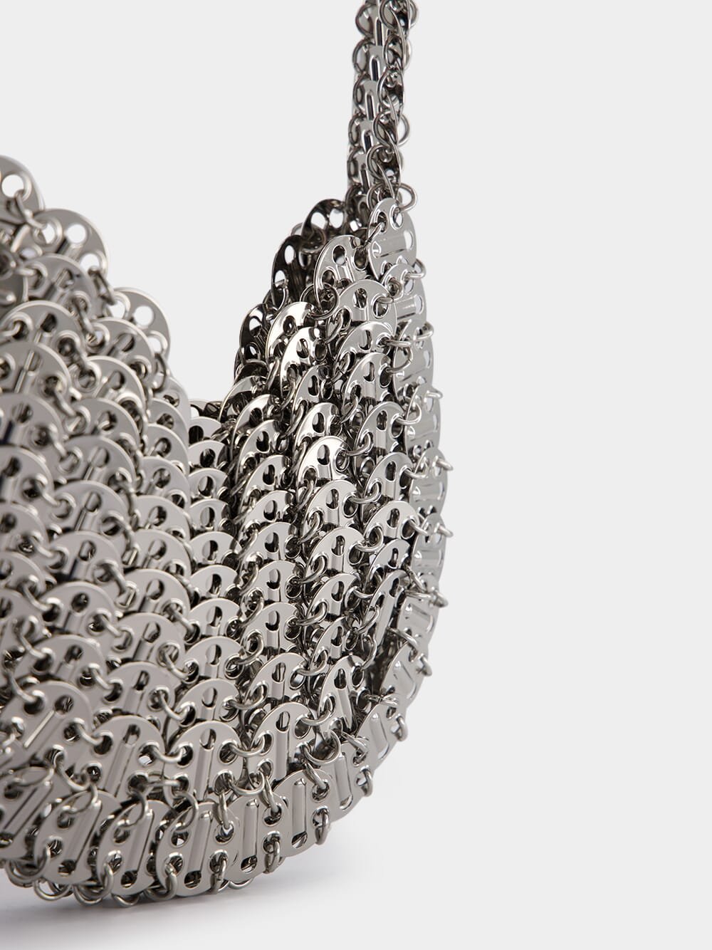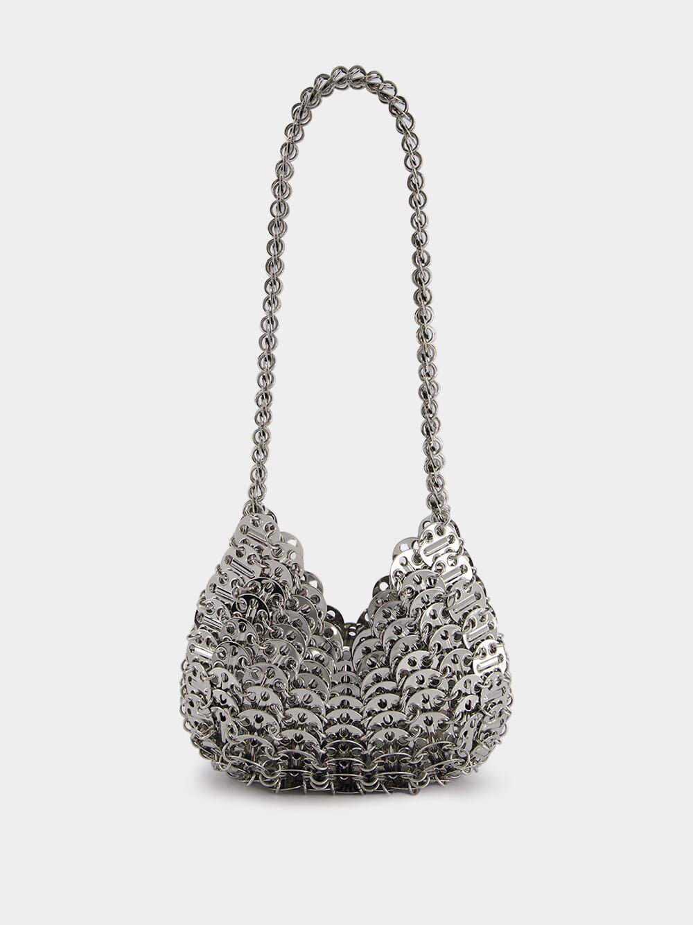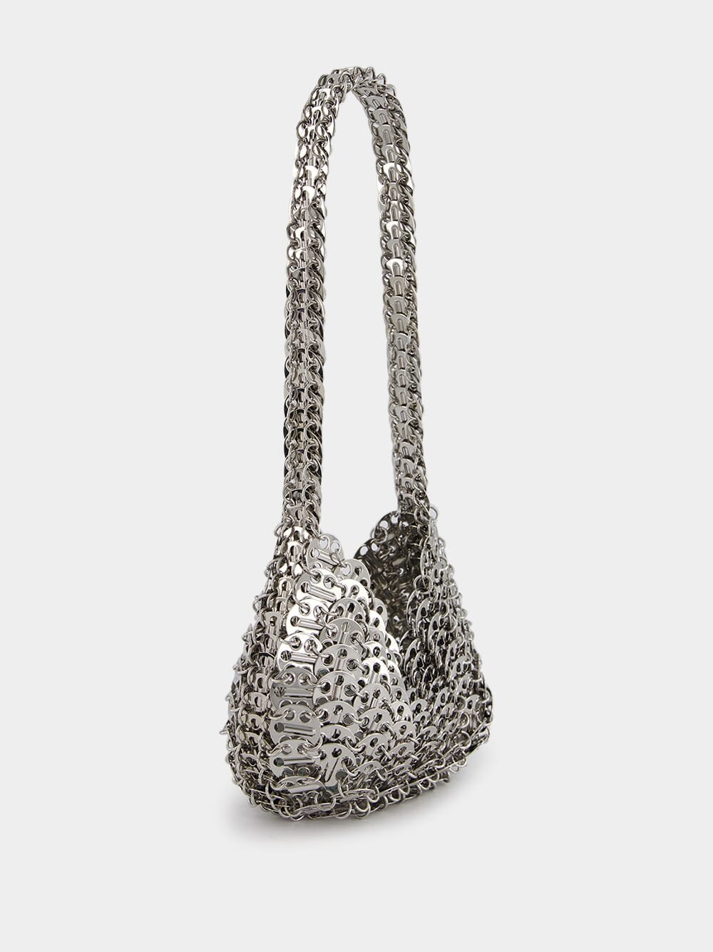 Crafted with meticulous attention to detail, the Rabanne Moon 1969 handbag boasts a polished finish, generously-sized disc accents, and an effortless open-top design; perfect for the modern, fashionable woman seeking luxurious sophistication.