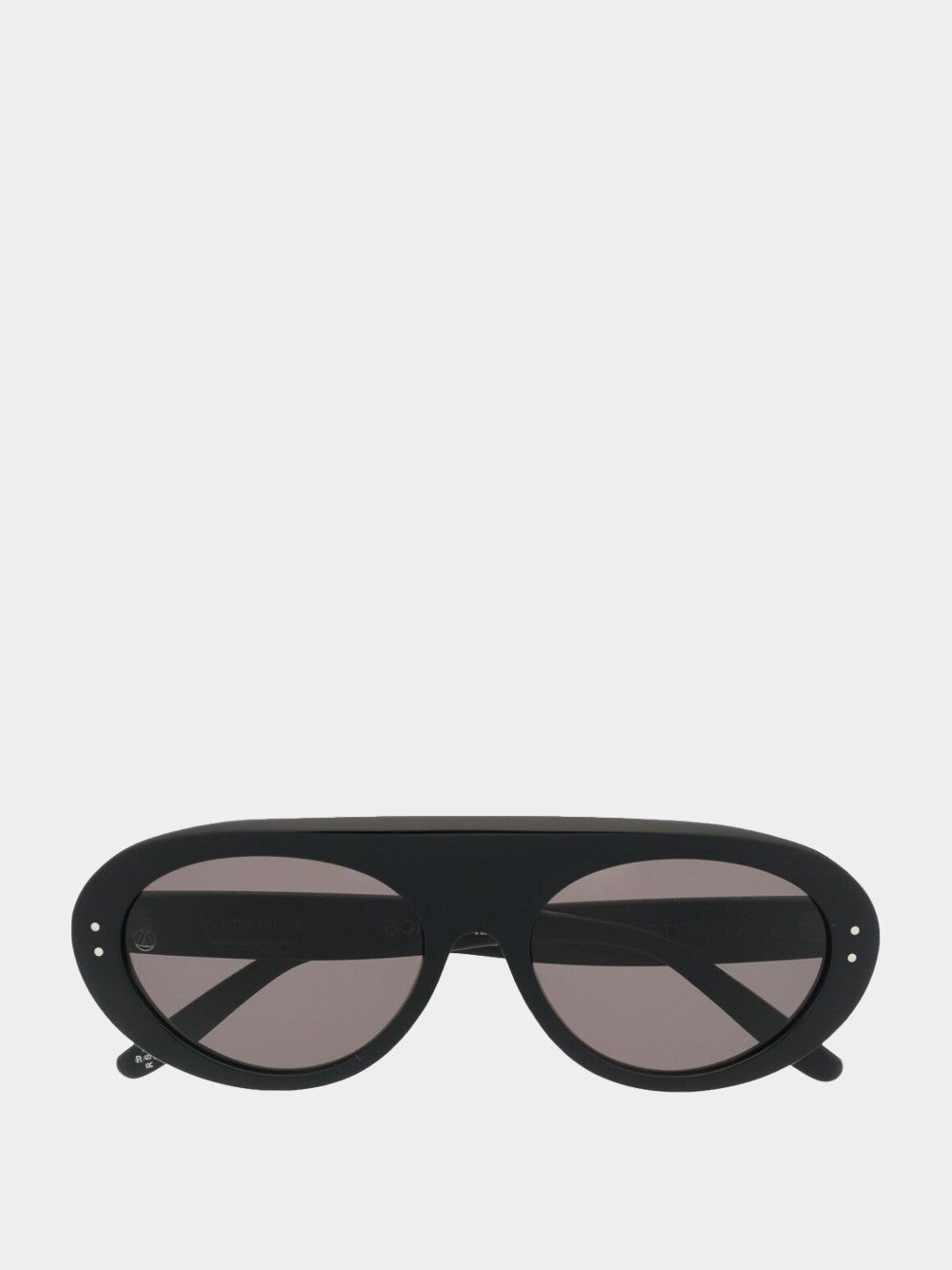 RetroSuperFuture Bombardino Tuxedo round sunglasses in black acetate and volcanic smoke lenses.