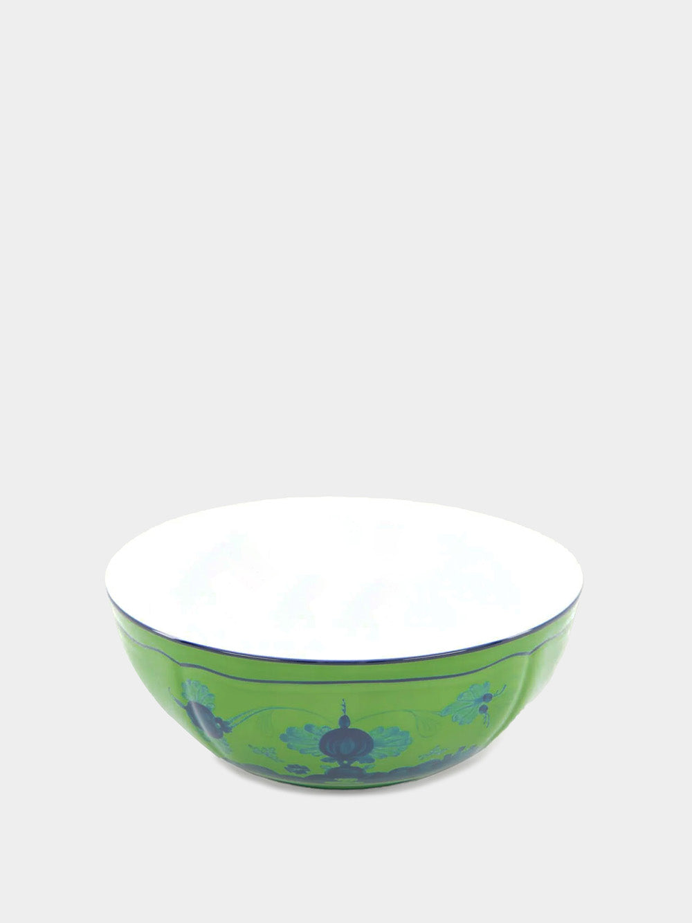 Oriente Italiano Bowl, a captivating blend of green aesthetics and exquisite porcelain craftsmanship. This eco-friendly porcelain bowl is carefully designed to elevate your dining experience while minimizing environmental impact.