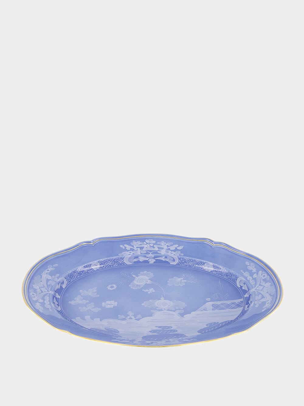 Richard Ginori Oriente Italiano pervinca porcelain oval flat platter, Antico Doccia shape.
