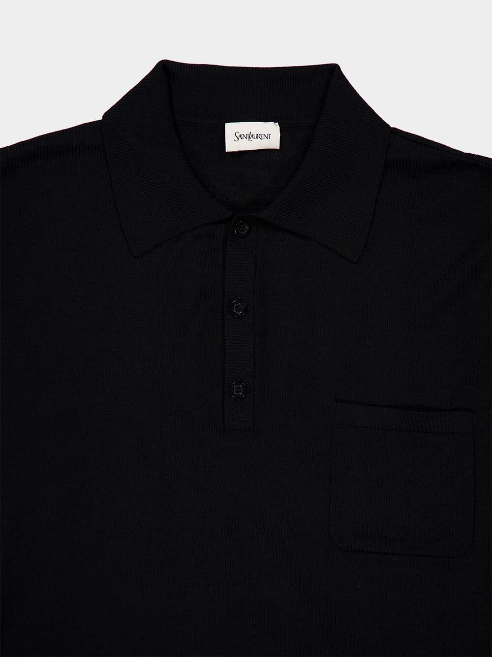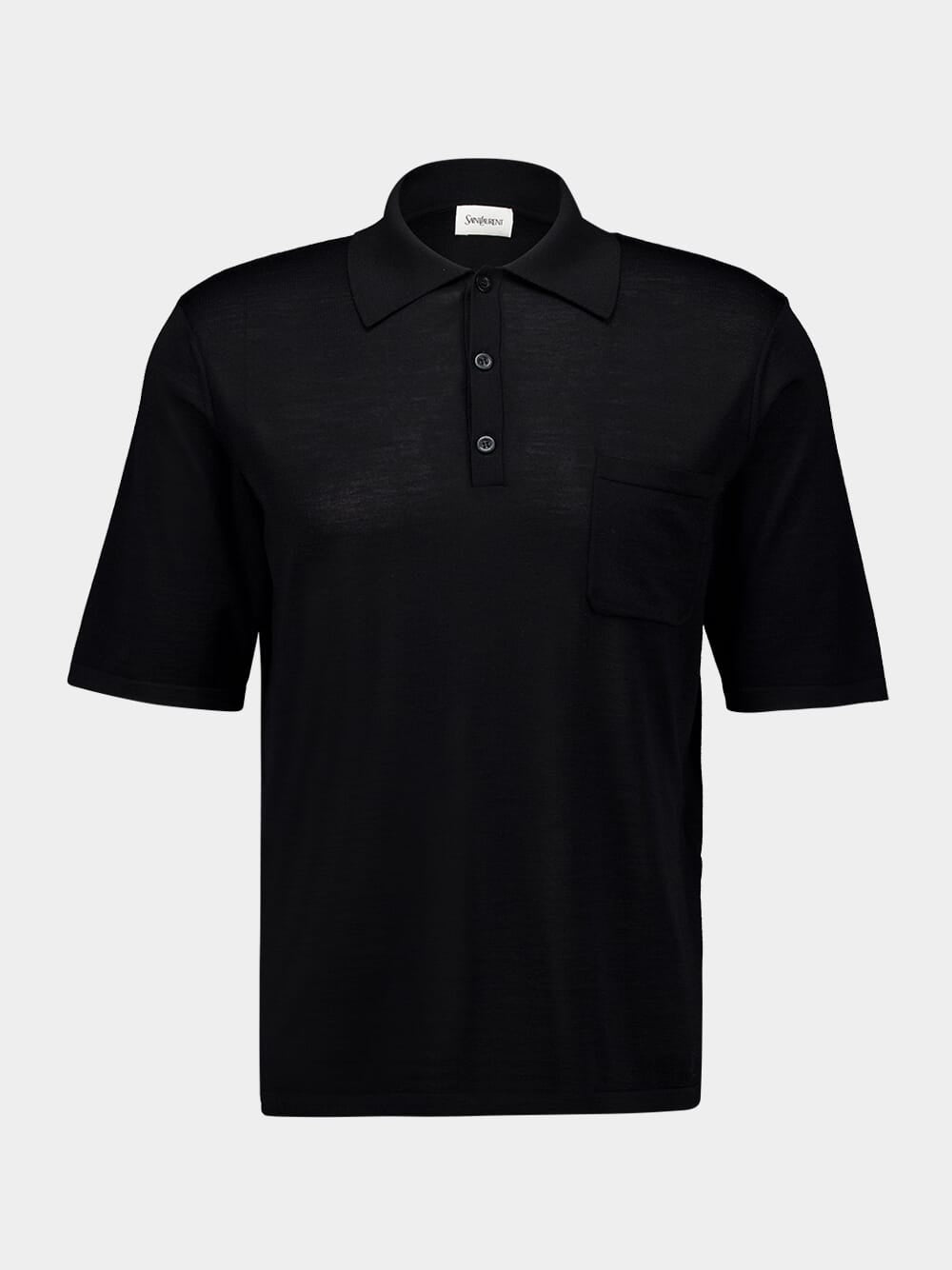 This refined black polo shirt is crafted from lightweight 100% wool, offering a perfect blend of comfort and sophistication. Featuring short sleeves, a classic collar, and a buttoned placket, the design is elevated with a patch pocket on the chest and subtle tonal Cassandre embroidery above the hem. Made in Italy, this versatile piece is ideal for both casual and semi-formal occasions, ensuring a polished look with luxurious softness.