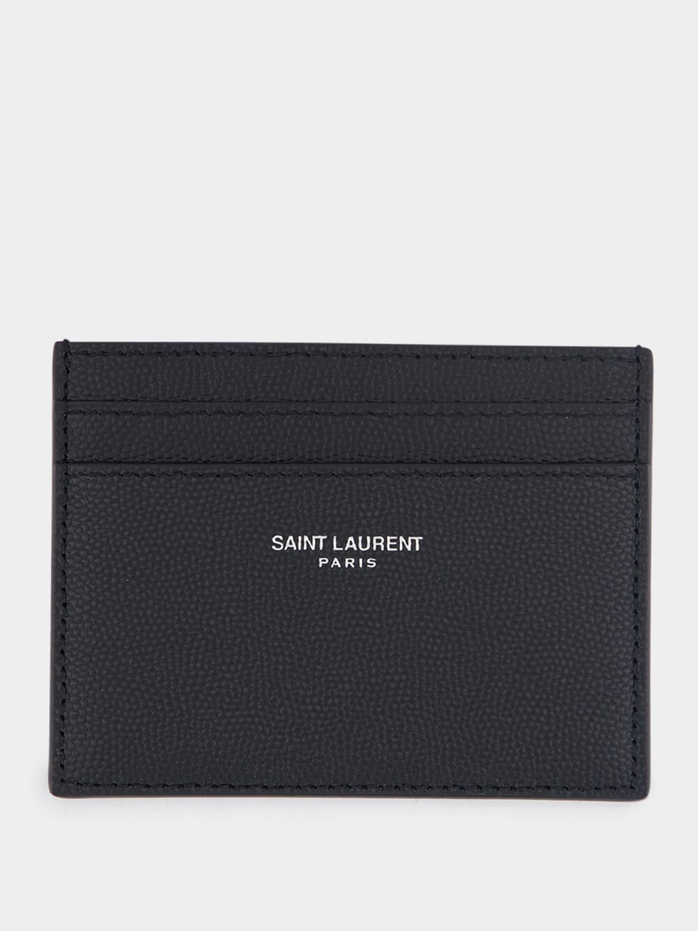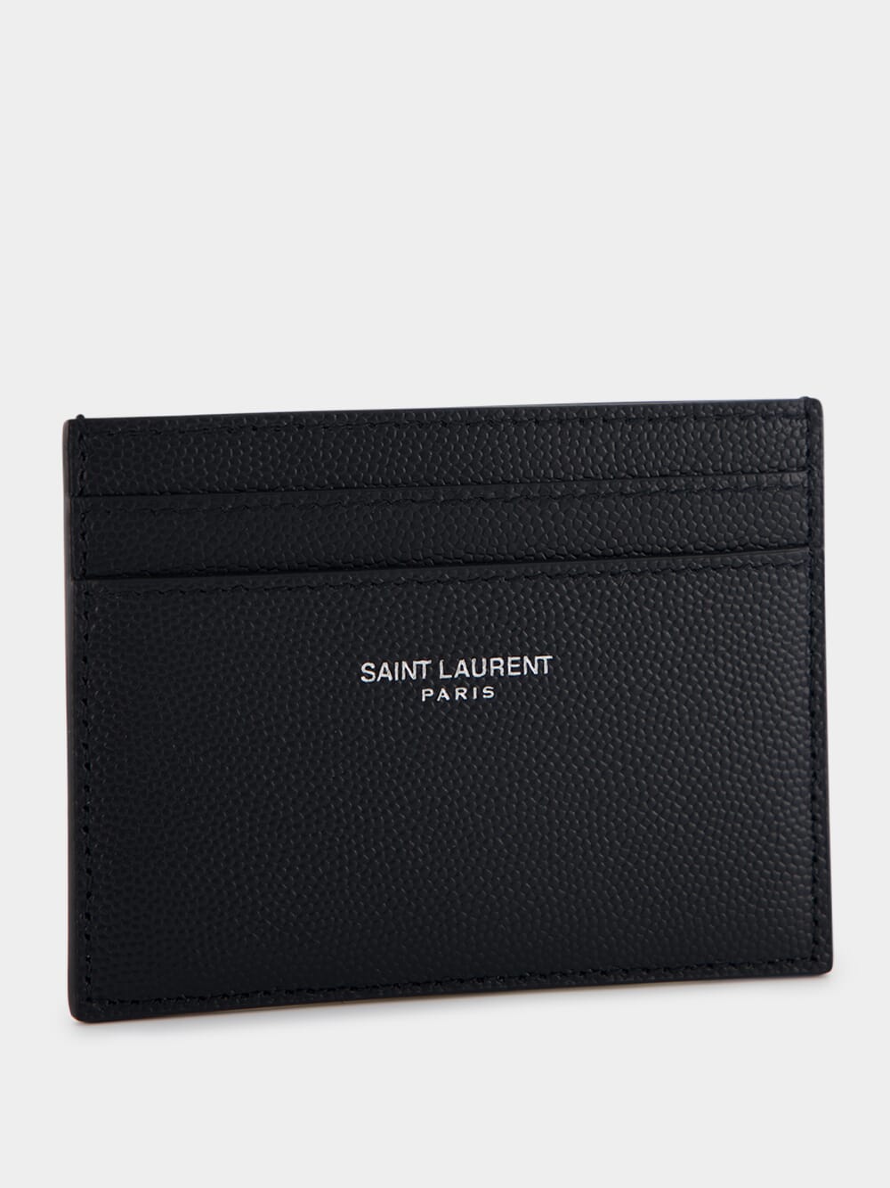 Credit card leather case, expertly crafted with metal-free tanned leather, this case exudes timeless elegance. The embossed Saint Laurent signature adds a touch of sophistication to your essentials.