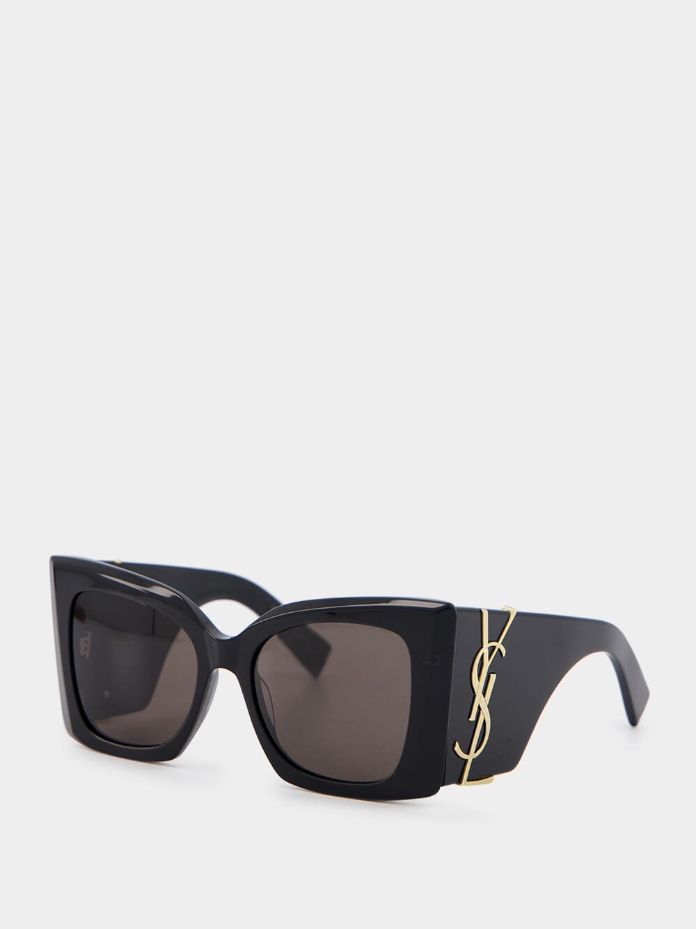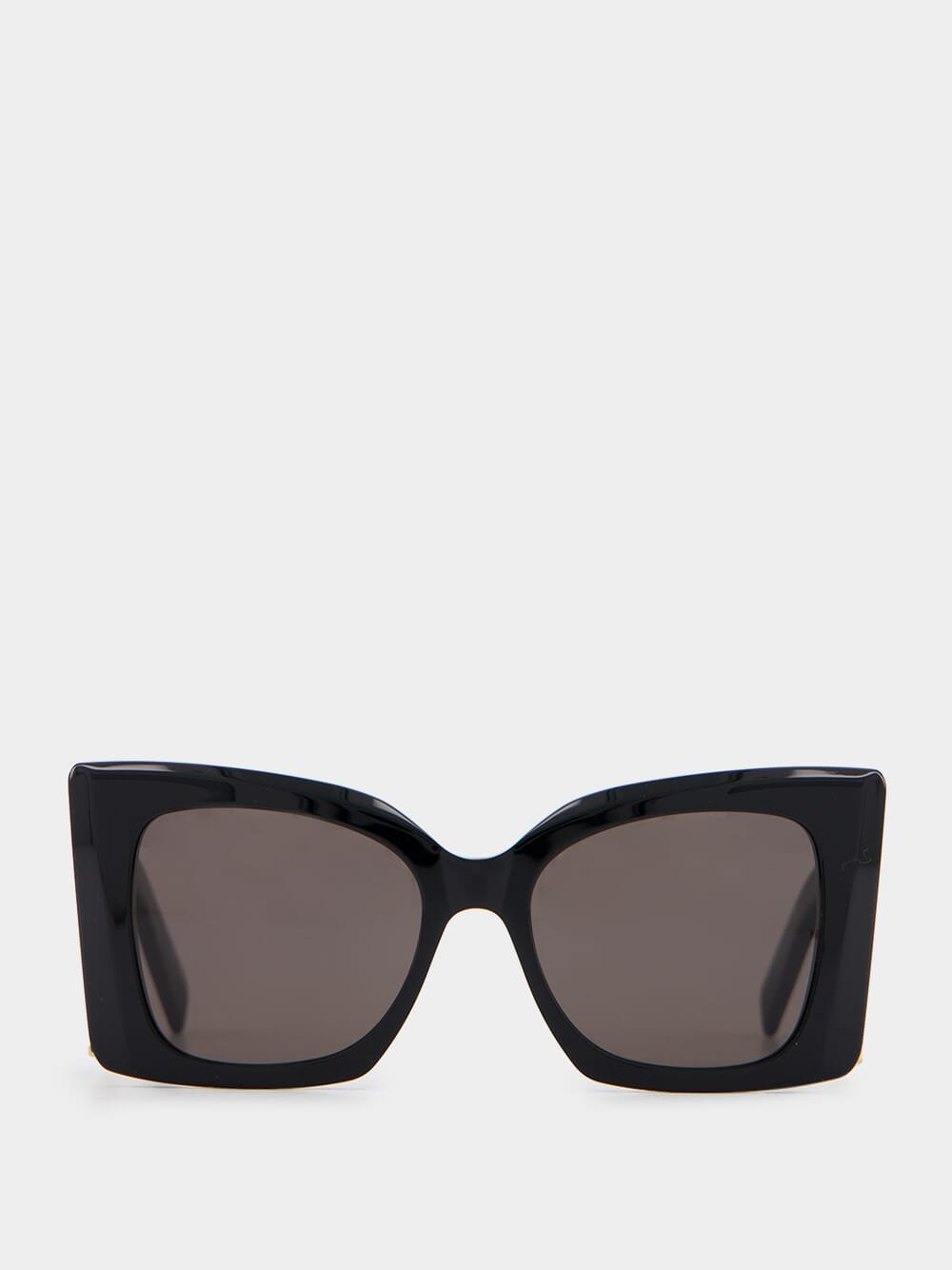 Saint Laurent oversized cat-eye framed sunglasses in black with nylon lenses and monogram logo on the wide temples.