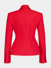 Single-Breasted Wool Blazer, a symbol of modern elegance in pure wool natté. The tailored design exudes contemporary sophistication, featuring a cropped length, short lapel, and a waist-defining single button. Elevate your style with tapered cuffs boasting high slits and a single button closure.