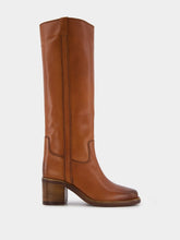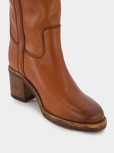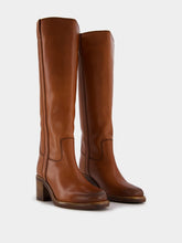 Seenia 70mm Leather Knee-High Boots, meticulously crafted from premium calf leather for a luxurious look and feel. These boots feature a classic round toe and a convenient slip-on style, making them both fashionable and easy to wear. With a chic mid-block heel and a durable rubber sole, these boots offer the perfect blend of style and comfort.
