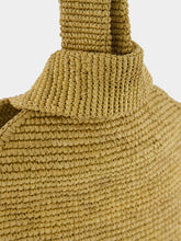 A blend of simplicity and functionality, this handbag features a unique pull-through design for a secure closure. Crafted from a tightly woven material, its sturdy structure and minimalist aesthetic make it a versatile addition to any collection.