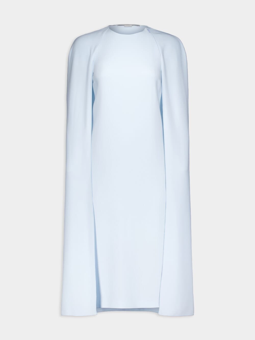 STELLA MCCARTNEY Cape Dress: A sustainable fashion statement crafted from forest-friendly viscose-blend cady. This dress features a classic crew neck and long sleeves with a unique cape slit design, adding a touch of sophistication and drama. With its eco-friendly materials and timeless silhouette, this dress is a perfect choice for those who appreciate sustainable luxury.