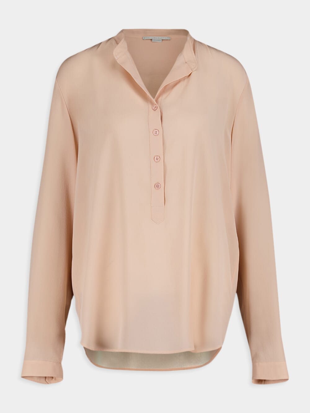 Eva Silk Blous features a band collar and a front button placket, showcasing a modern and chic design. With long sleeves and button cuffs, it offers a sophisticated and versatile look. The curved hem adds a touch of elegance, making it perfect for any occasion.