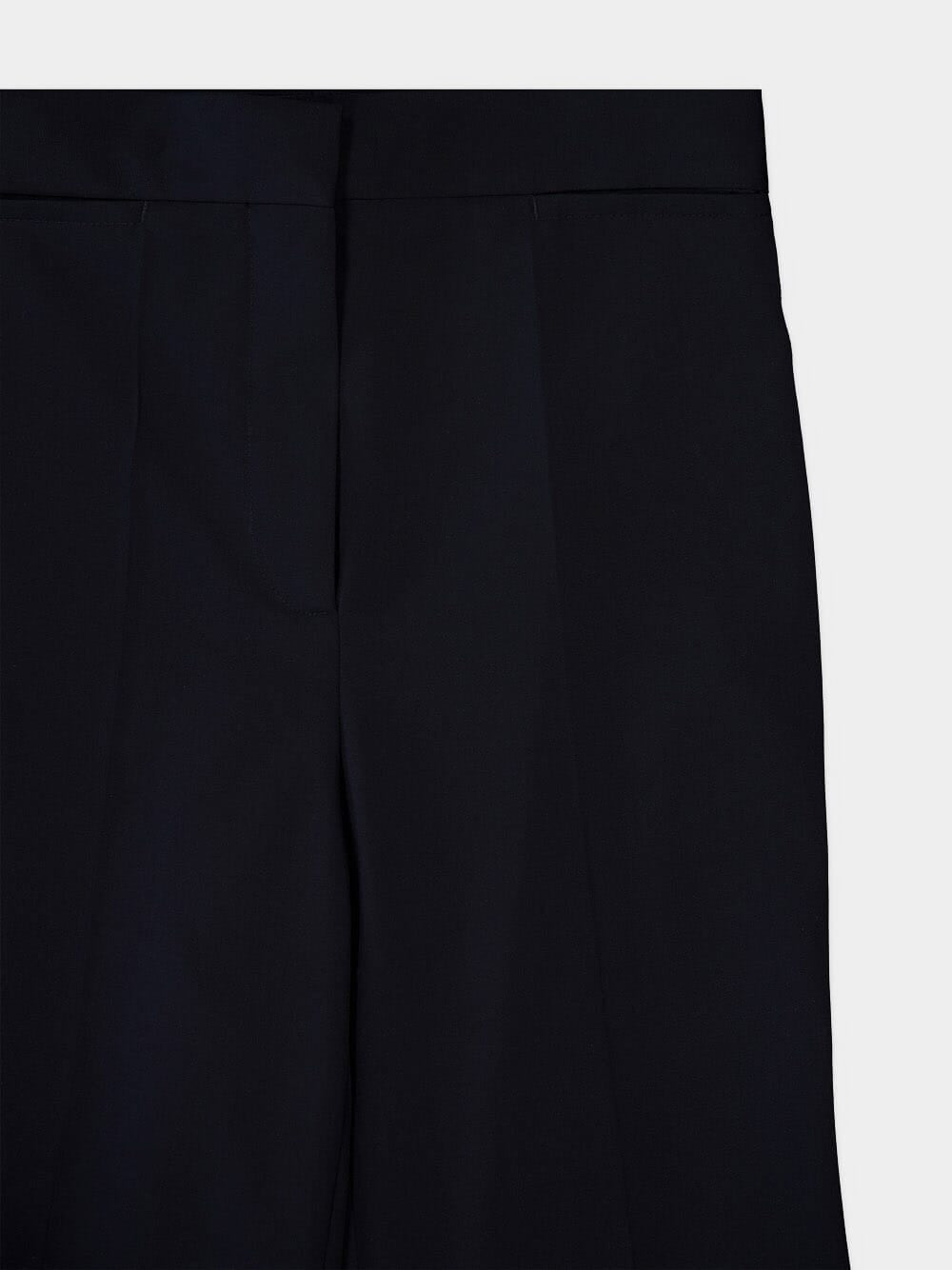 Flared Tailored Trousers, crafted with premium RWS wool-blend tailoring fabric, ensuring both style and sustainability. The zip fly and button fastening, along with the hook-and-bar secure, offer a secure and polished fit. Designed with two front slant pockets and two back jetted pockets, these trousers combine functionality and elegance. With a mid-rise and flared leg, they create a flattering silhouette for a timeless look.