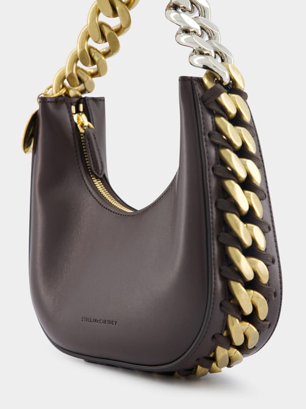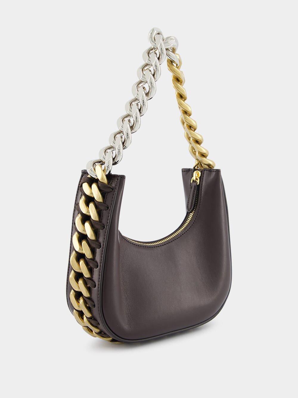 Frayme Mini Zipped Shoulder Bag, crafted with smooth Alter Mat, a luxurious vegan alternative to animal leather, this bag is both chic and ethical. The oversized signature silver and gold infinitely recyclable aluminium diamond-cut chain adds a touch of elegance to its design. It features a GOTS-certified cotton lacing, emphasizing its commitment to eco-consciousness. The bag offers convenient wear with one shoulder strap, and inside, you'll find a slip pocket for easy organization. The stainless steel magnetic snap fastening ensures secure closure, complemented by the engraved gold logo medallion charm. Fully lined, this Frayme Mini Zipped Shoulder Bag is a true embodiment of fashion and responsibility.