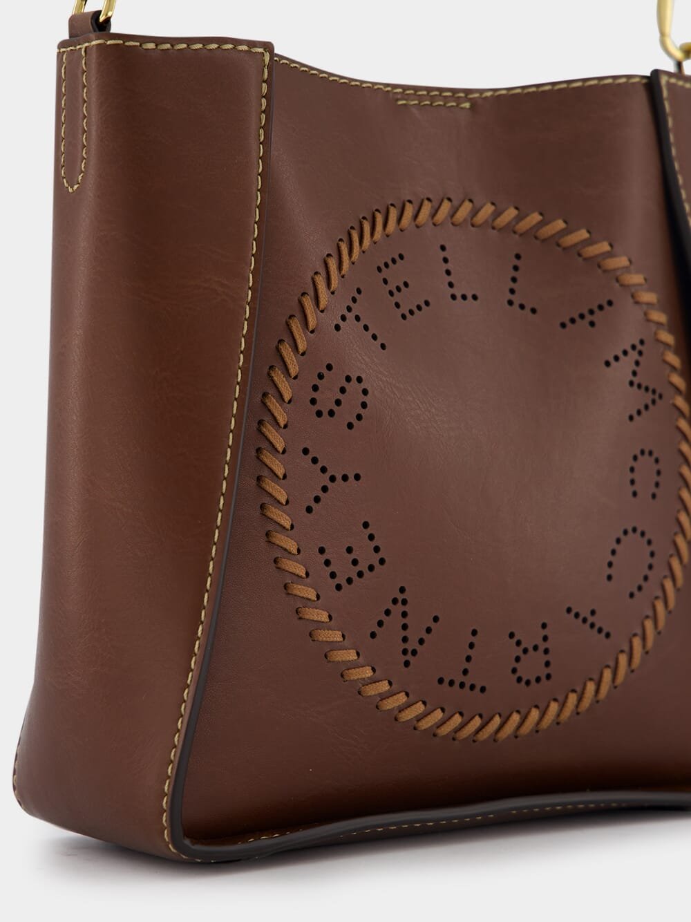 Mini Frayme Bucket Logo-Plaque Bag, featuring a striking multi-panel design that catches the eye. The exquisite faux-fur trim adds a touch of luxury, while the signature diamond-cut chain-link trim exemplifies its uniqueness. Adorned with a captivating gold-tone logo plaque, this bag is a true statement piece. Enjoy versatile carrying options with the adjustable shoulder strap, and organize with ease using the spacious main compartment.