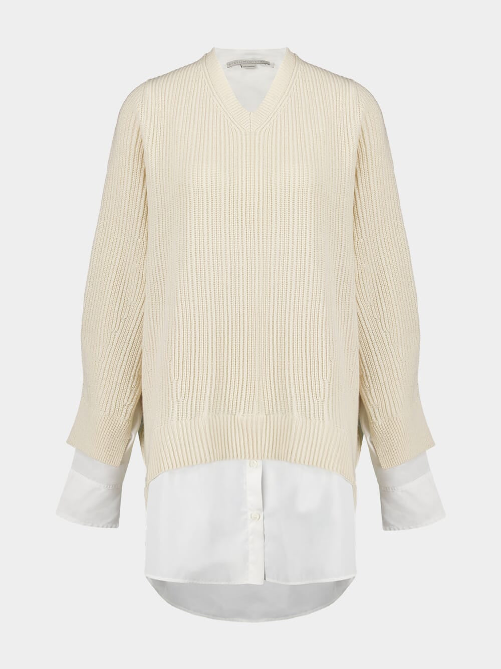 The Natural Hybrid V-Neck Jumper is a sophisticated fusion of knitwear and shirting, perfect for Spring 2025. Crafted from a luxurious blend of cashmere and RWS-certified virgin wool, this long-sleeved jumper features a classic V-neckline and ribbed hem for a refined look. Contrasting organic cotton shirting details, including a buttoned hem and cuffs, add a layered effect without the bulk. Comfortable and stylish, this piece effortlessly transitions between casual and polished occasions.