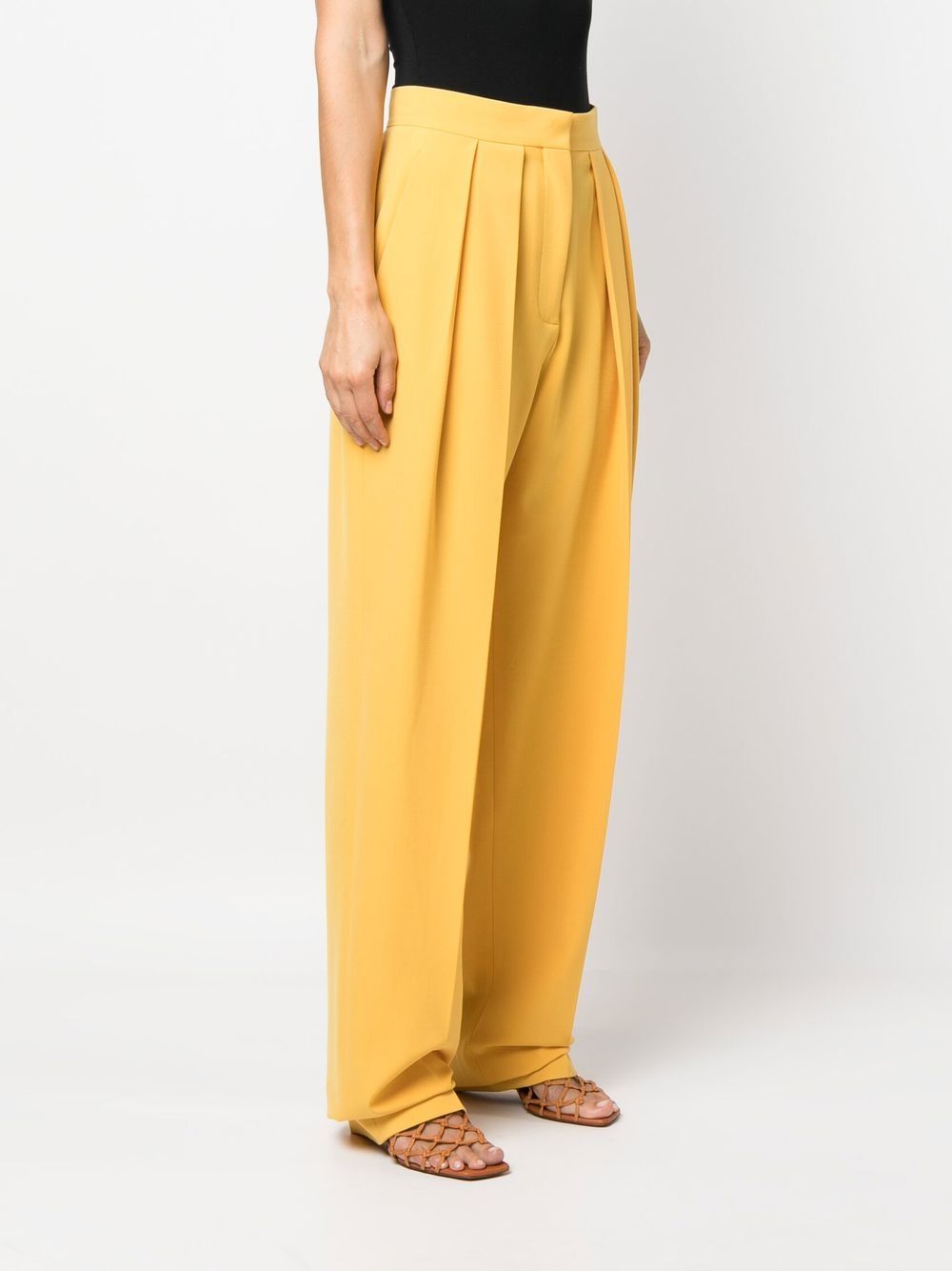Stella McCartney straight leg trousers in yellow with recycled materials, wool-blend twill and plated front.
