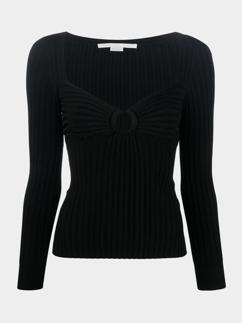Stella McCartney long sleeves ribbed jumper in black with cut-out detailing.