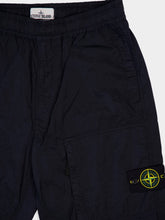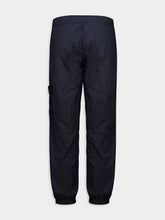 These navy blue cargo jogger pants are crafted from Stone Island's iconic iridescent Nylon Metal fabric, made using ECONYL® regenerated yarns. Designed with sustainability in mind, this fabric is created from recycled pre- and post-consumer nylon, offering the same durability and quality as traditional nylon. Featuring a nylon mesh lining, snap hand pockets, and a patch zip pocket on the leg, these jogger pants provide both functionality and style. Garment-dyed with a double color recipe, they offer a unique, rich finish and are perfect for casual or athletic wear.