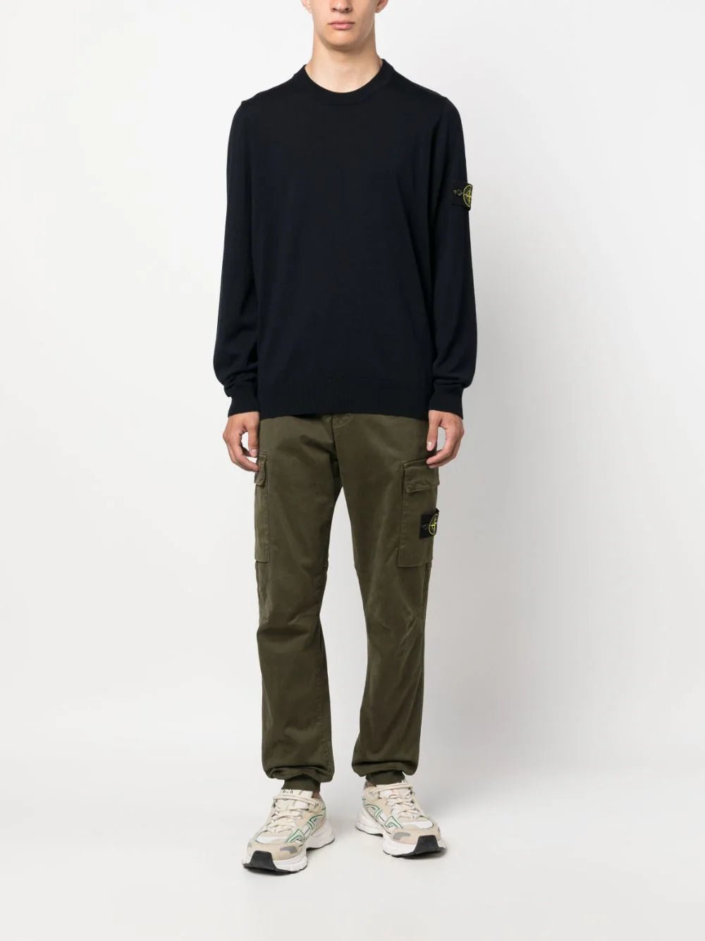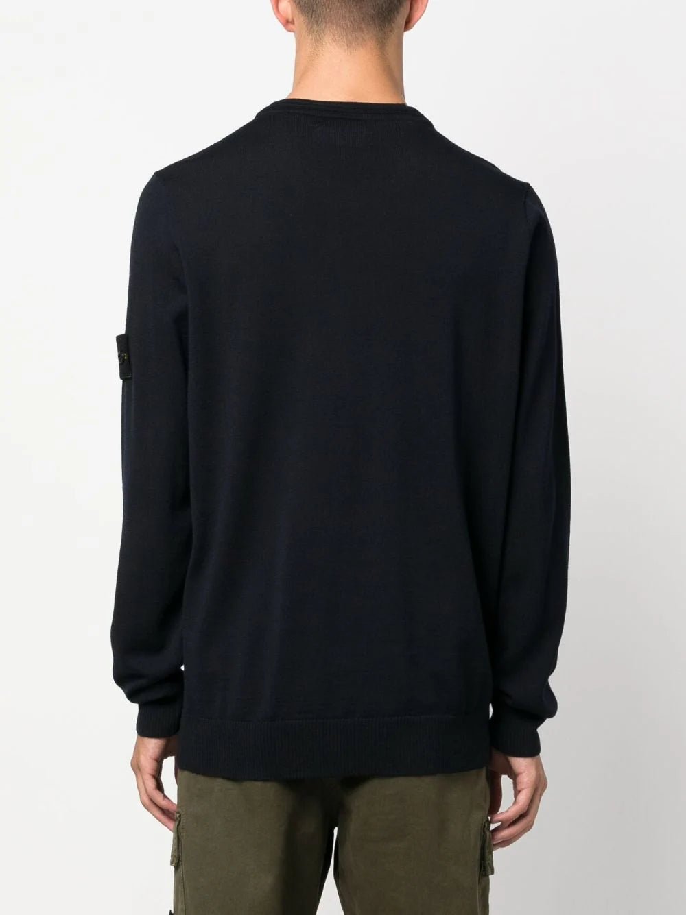 Compass-Patch Virgin Wool Jumper. Crafted from luxurious virgin wool, this jumper offers unparalleled warmth and comfort. Embrace the iconic appeal of the signature Compass motif, elegantly complemented by the logo patch at the sleeve. The classic crew neck, long sleeves, and ribbed cuffs and hem ensure a tailored fit, while the straight hem adds a polished touch.