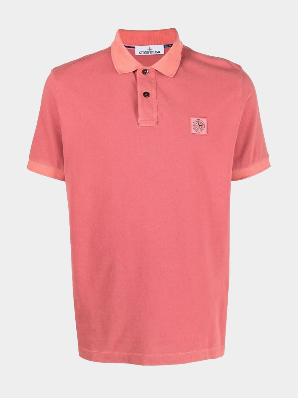 Stone Island short sleeves polo shirt in cotton piqué with pigments for a deep colour and iridescent effect featuring a logo patch on chest.