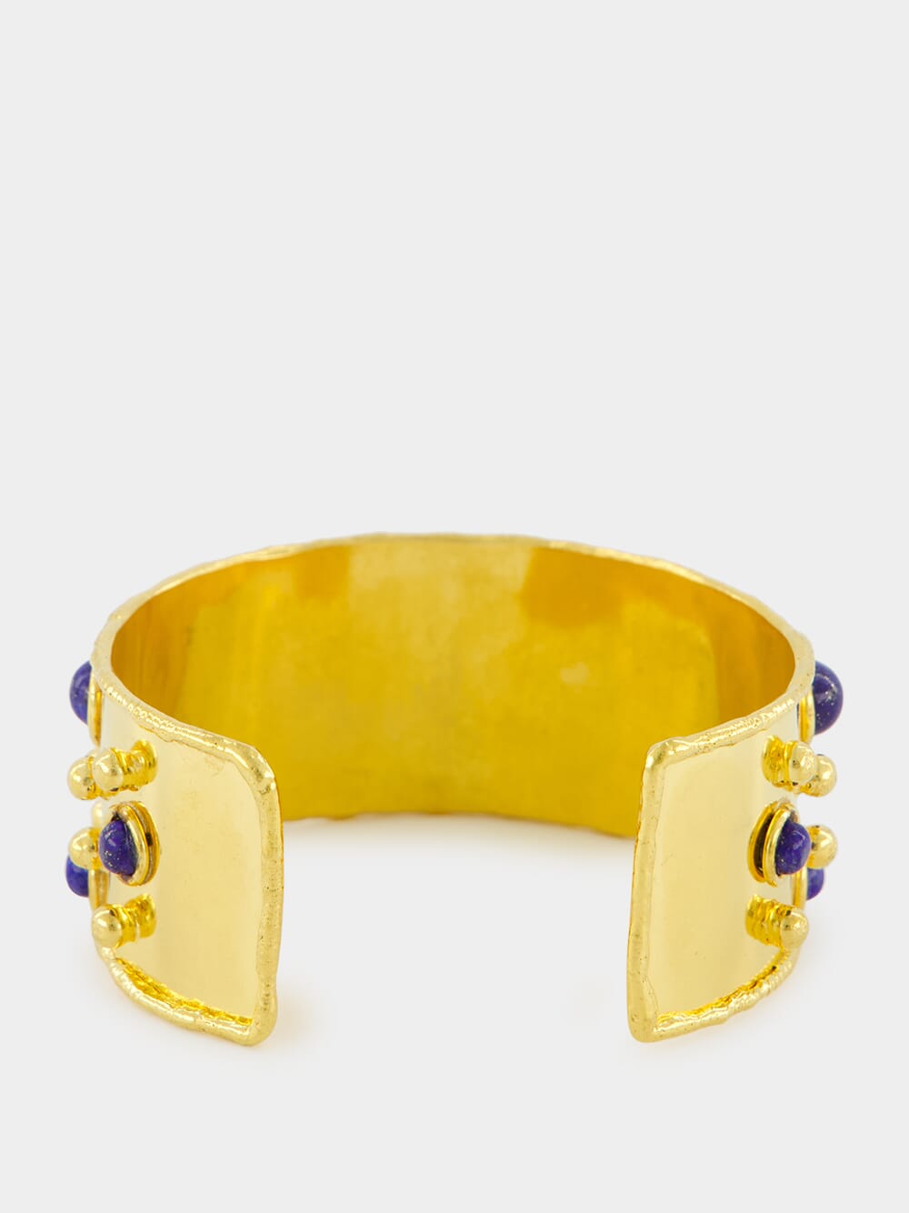 Sylvia Toledano Cuff Byzantine golden metal bracelet with lapis stones.