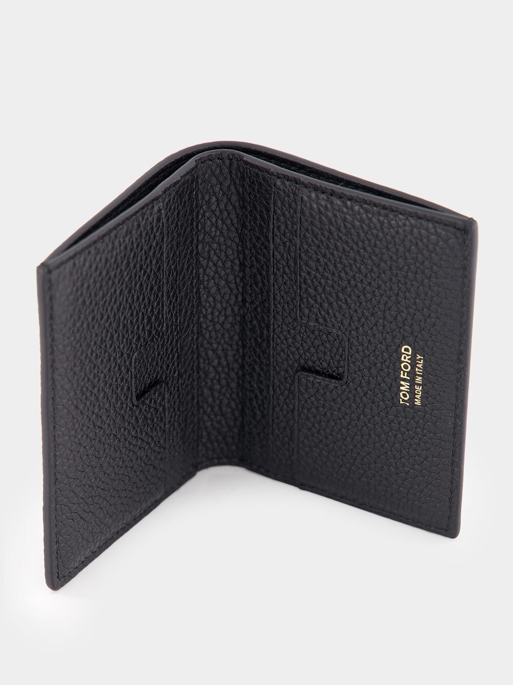 This elegant folding cardholder by Tom Ford is crafted from luxurious black grain leather, offering both durability and sophistication. It features six credit card slots and a separate money slot, ensuring ample space for your essentials. The embossed Tom Ford logo adds a touch of refinement. Perfect for all-season use, this cardholder is a stylish and practical accessory for the modern individual.
