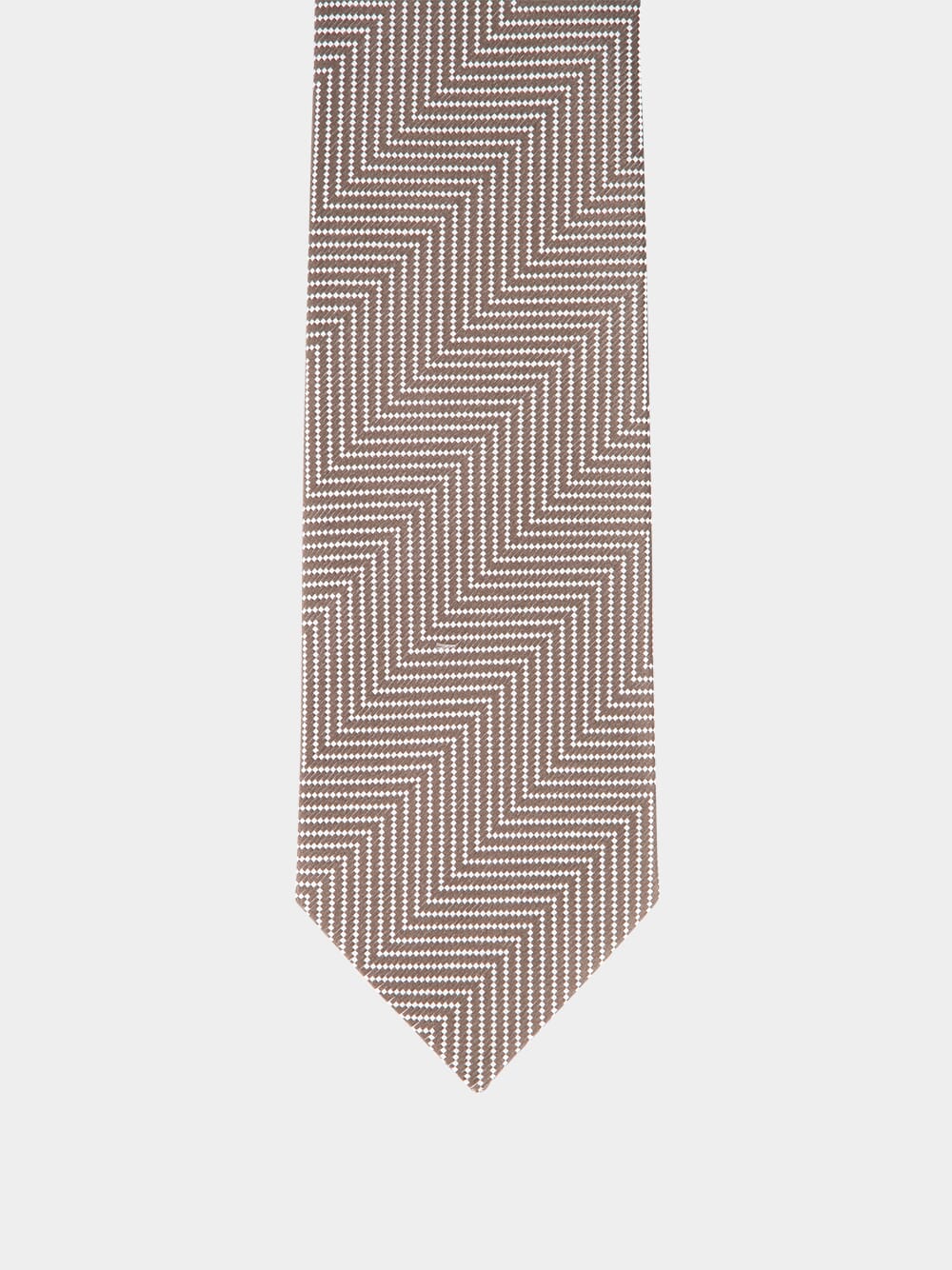 Add a touch of sophistication to your formal attire with this elegant brown tie, crafted from luxurious Mulberry silk. The subtle pattern enhances its refined look, making it a perfect accessory for any suit. Soft to the touch and with a beautiful sheen, this tie is designed to complement a wide range of outfits, adding a touch of class and elegance. Ideal for business meetings, weddings, or any formal occasion, this tie is a versatile and timeless addition to any gentleman's wardrobe.