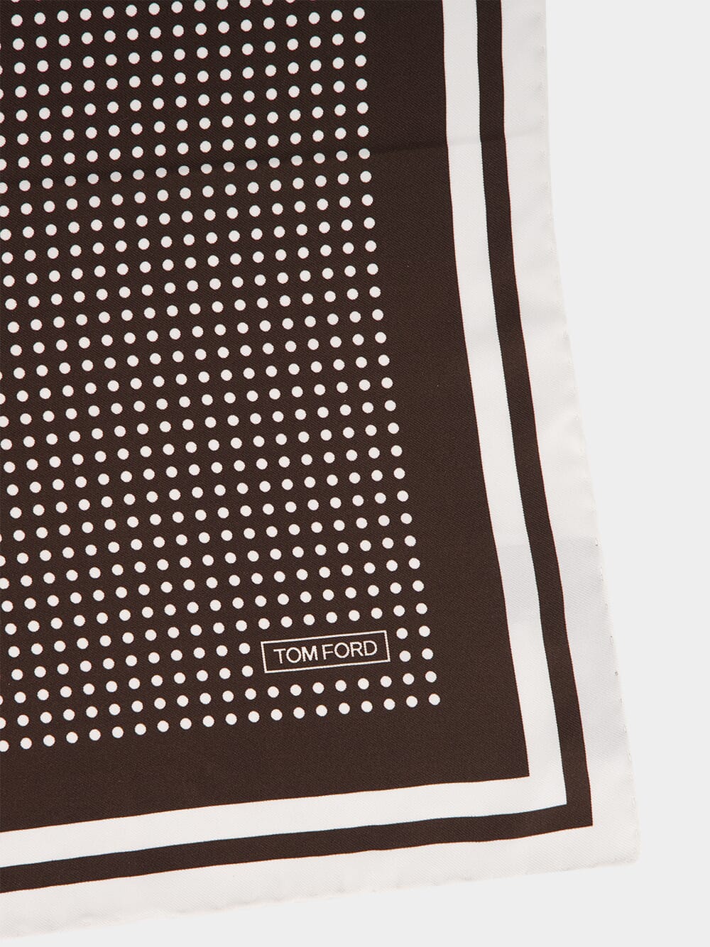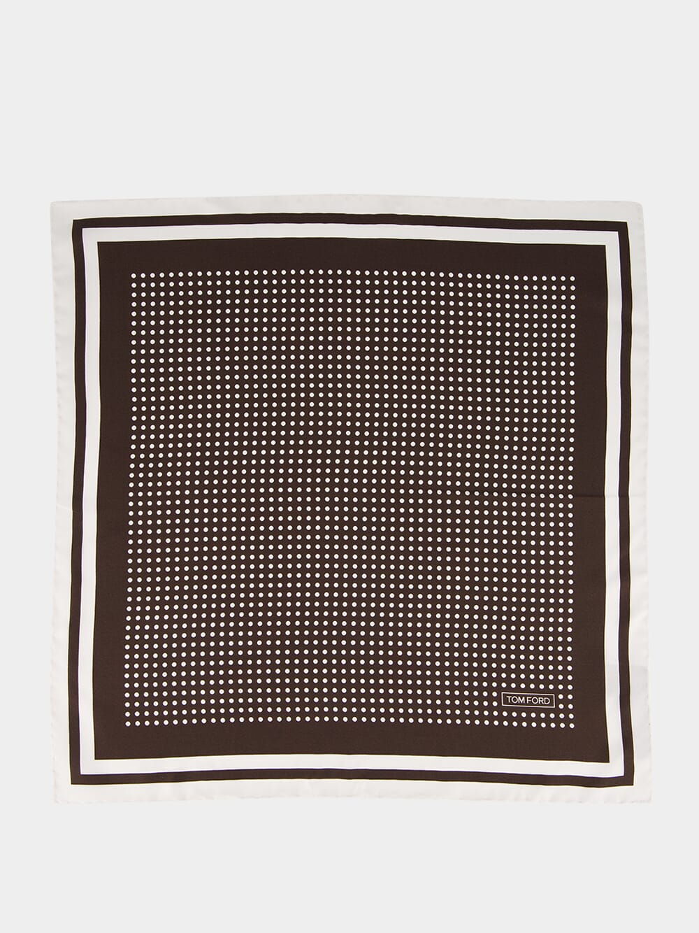 Elevate your formalwear with this classic brown pocket square, meticulously crafted from 100% silk. Featuring a timeless polka dot pattern framed by a contrasting border, this pocket square adds a touch of elegance and sophistication to any suit. The luxurious silk fabric ensures a smooth, refined finish, perfect for special occasions or daily wear. Its versatile design makes it an essential accessory for the modern gentleman, providing a subtle yet impactful detail to complete your ensemble.