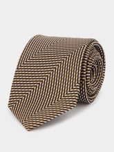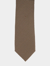 A distinguished piece, this silk tie features a geometric chevron pattern in a refined color palette. Its luxurious texture and intricate design make it a perfect choice for the fashion-forward professional looking to make a statement.