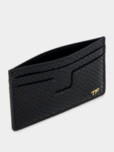 Sleek and sophisticated, this Tom Ford card holder is crafted from luxurious printed python leather, offering a refined textured finish. The compact design is perfect for carrying essentials, featuring multiple card slots for seamless organization. The signature gold-tone TF logo adds a touch of elegance, making it an ideal accessory for modern professionals who appreciate timeless style and premium craftsmanship.