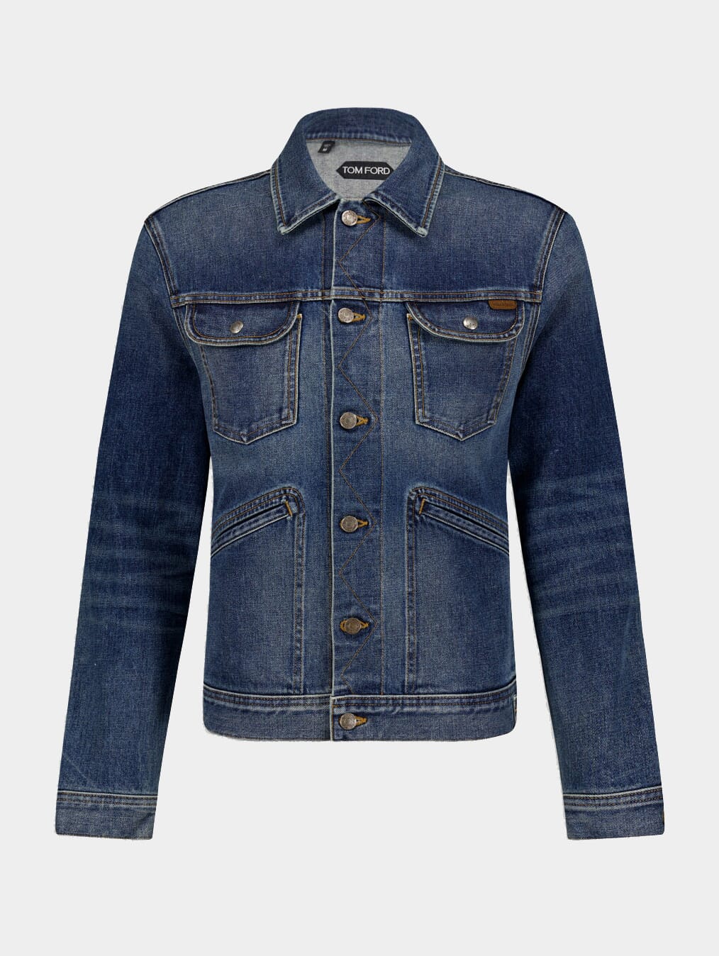 Classic Washed Denim Jacket, crafted with contrast stitching, this jacket showcases exceptional attention to detail. Featuring a logo patch to the rear and pointed flat collar, it exudes both sophistication and individuality. The front button fastening, buttoned cuffs, and multiple pockets, including two front flap pockets and two front patch pockets, offer a harmonious balance of function and fashion.