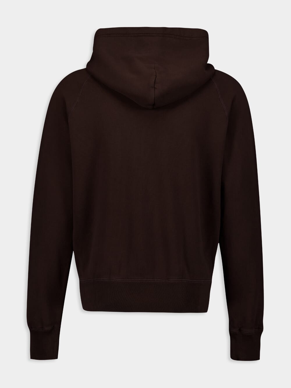 This brown garment-dyed hoodie is crafted from premium cotton, providing exceptional comfort and style. Featuring a classic hood, zip closure, and ribbed cuffs, it is perfect for casual wear. The garment-dyed process gives it a unique, slightly faded appearance, adding to its relaxed charm.