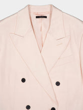 This light pink double-breasted blazer exudes a perfect blend of sophistication and contemporary style. Featuring a classic double-breasted button fastening, this blazer is designed with timeless lapels and two front flap pockets, adding a touch of elegance and functionality. The long sleeves and straight hem ensure a polished and flattering silhouette. Ideal for both professional and casual settings, this versatile blazer can be paired with tailored trousers for a chic office look or with jeans for a more relaxed yet stylish ensemble.