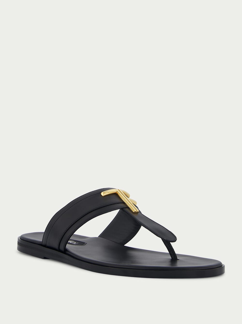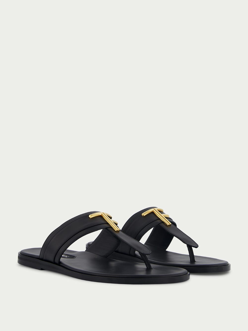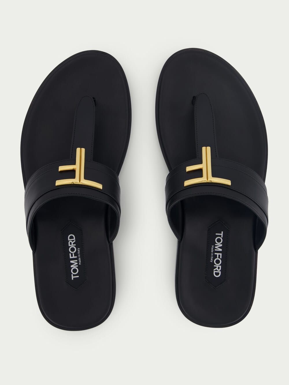 TOM FORD Flip Flops Leather Sandals, a sleek and versatile choice in timeless black leather. Crafted with high-quality materials, these sandals offer both comfort and durability. The flip flop design adds a casual yet stylish touch to your summer wardrobe.