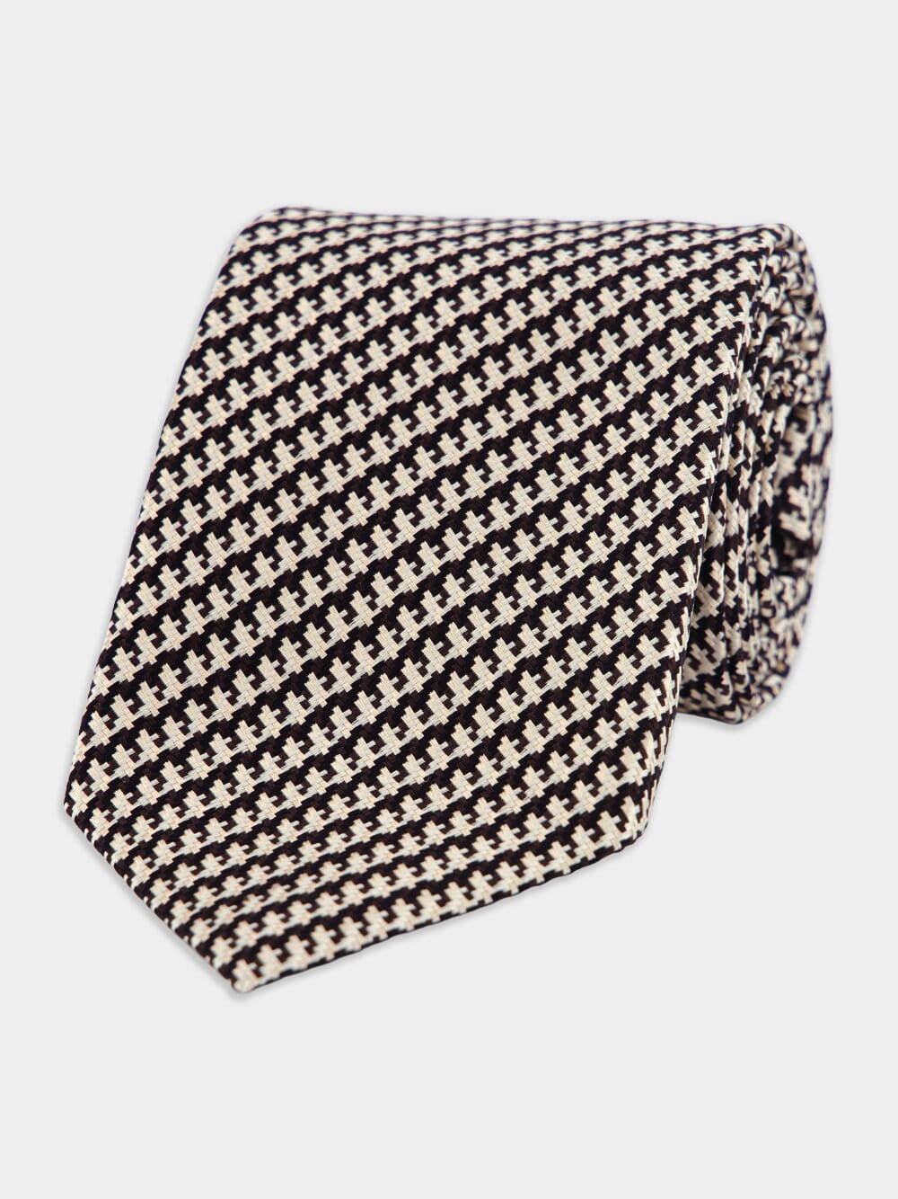 Geometric Motif Silk Tie crafted from premium silk, this tie offers a luxurious touch and a smooth texture. The sophisticated combination of grey and white, optimized for style, beautifully accentuates the intricate geometric pattern, adding a touch of timeless charm to your ensemble. Elevate your formal or casual look with this versatile accessory, suitable for any occasion.