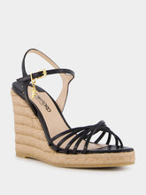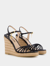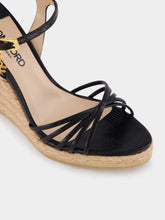 Black Printed Lizard Leather Cabana Wedge Espadrille