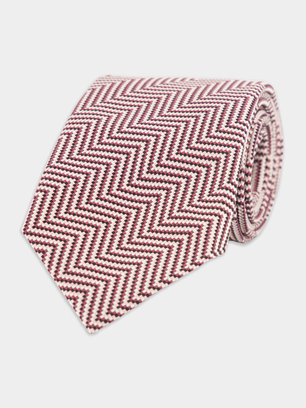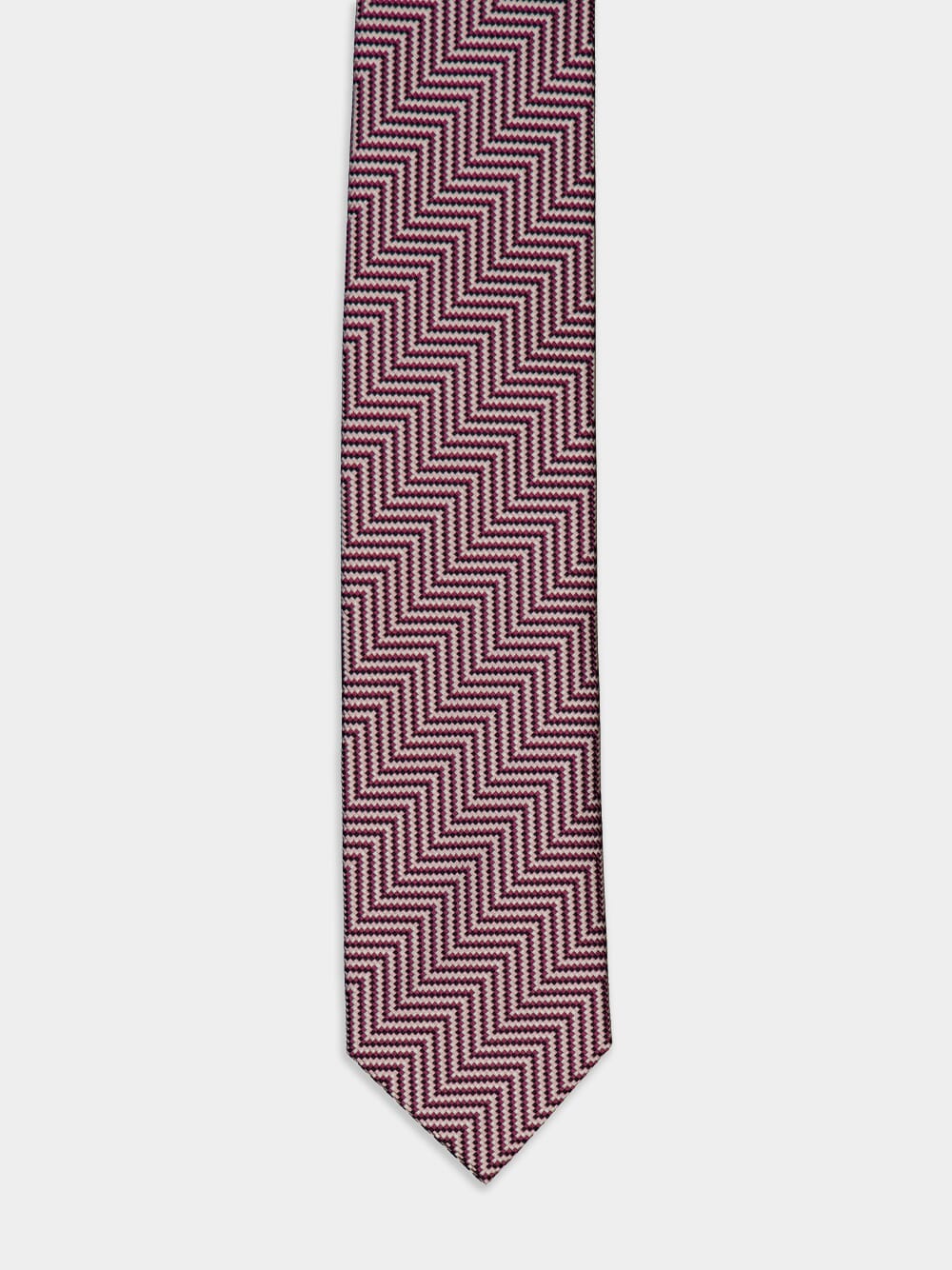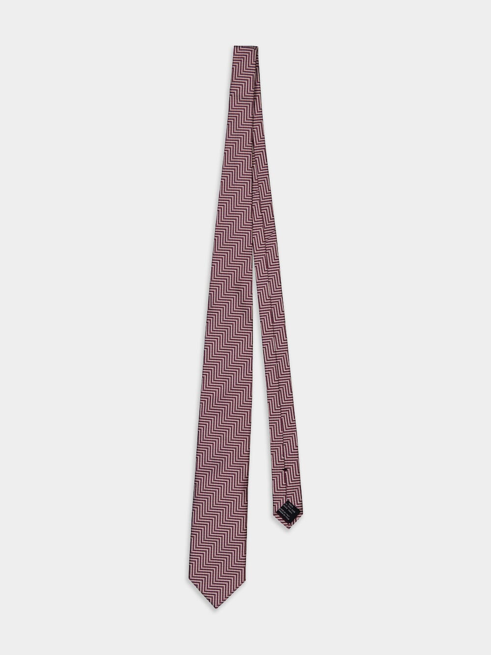 Striped Motif Silk Tie crafted from premium silk, this tie offers a luxurious feel and a refined texture. The vibrant red hue, optimized for elegance, beautifully complements the sophisticated striped pattern, adding a touch of boldness to your ensemble.