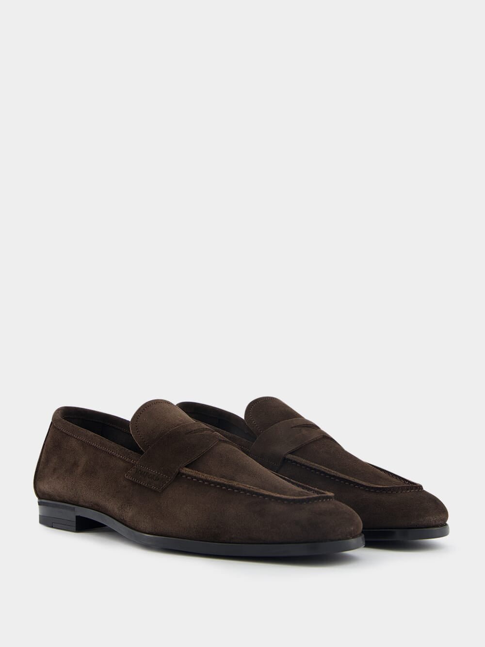 Suede Sean Twisted Band Loafer, crafted from premium woven leather with contrasting smooth leather accents, these loafers exude luxury and sophistication. The classic penny band detail adds a touch of timeless elegance, making them perfect for any occasion.