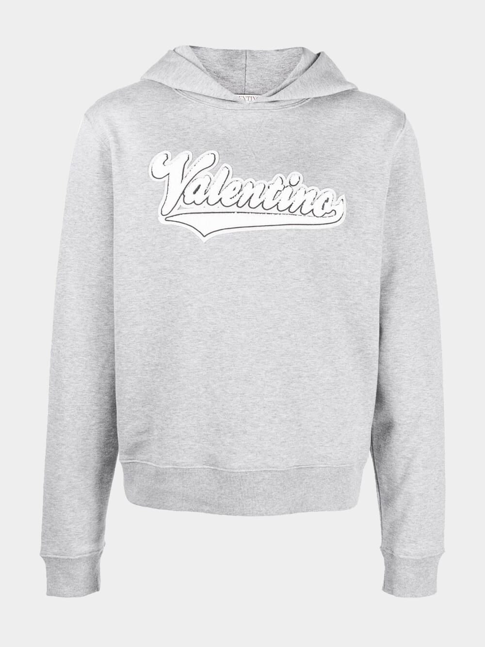 Valentino Garavani grey cotton hooded sweatshirt with brand logo embroidery on front.