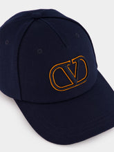 The Valentino Garavani VLogo Signature baseball cap is a stylish accessory crafted from premium cotton. Featuring the iconic VLogo embroidery in striking orange, this navy cap combines casual elegance with a sporty touch. It includes an adjustable strap for a perfect fit, making it an ideal choice for any casual outing or sporty activity. Elevate your everyday look with this sophisticated and versatile cap.