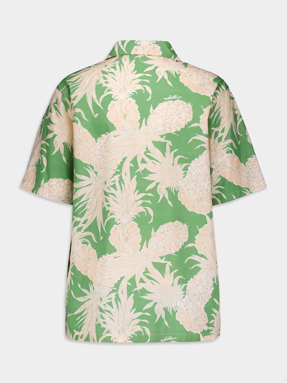 Bowling Shirt W/ Pineapple Print crafted from premium cotton, this shirt offers a comfortable and breathable fit, perfect for those heated bowling showdowns. Elevate your casual look with the unique combination of green aesthetics and superior cotton craftsmanship, making this shirt a striking addition to your wardrobe.