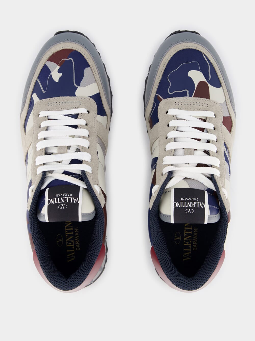 Valentino Garavani camouflage rockrunner sneakers in fabric and nappa leather with rubber stud details.