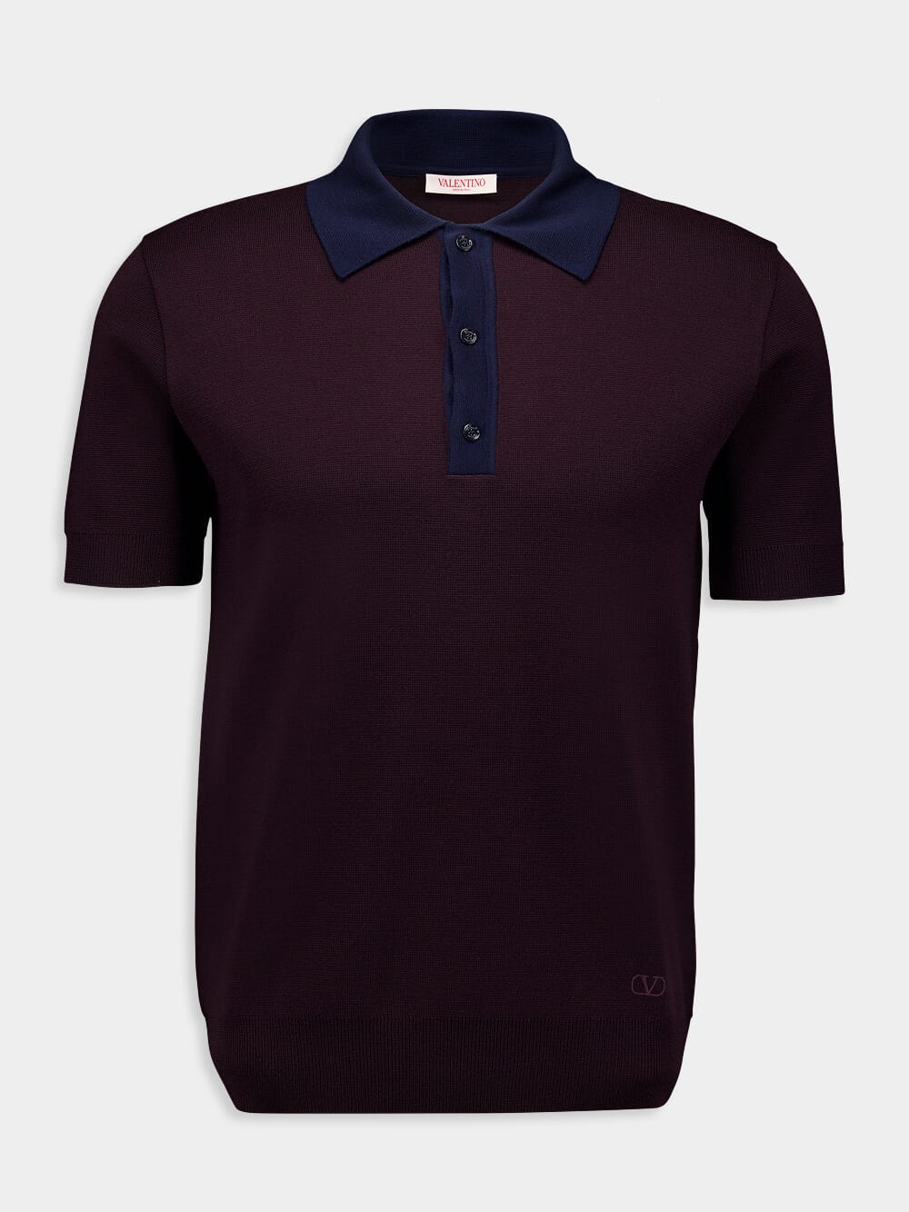 Maroon Wool Polo Shirt with VLogo Embroidery