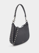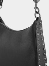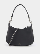 Grain Leather Small Hobo Rockstud Bag crafted from premium black leather, this bag exudes timeless elegance with a contemporary twist. The iconic rockstud accents add a touch of edgy charm, making it a statement piece for any occasion.