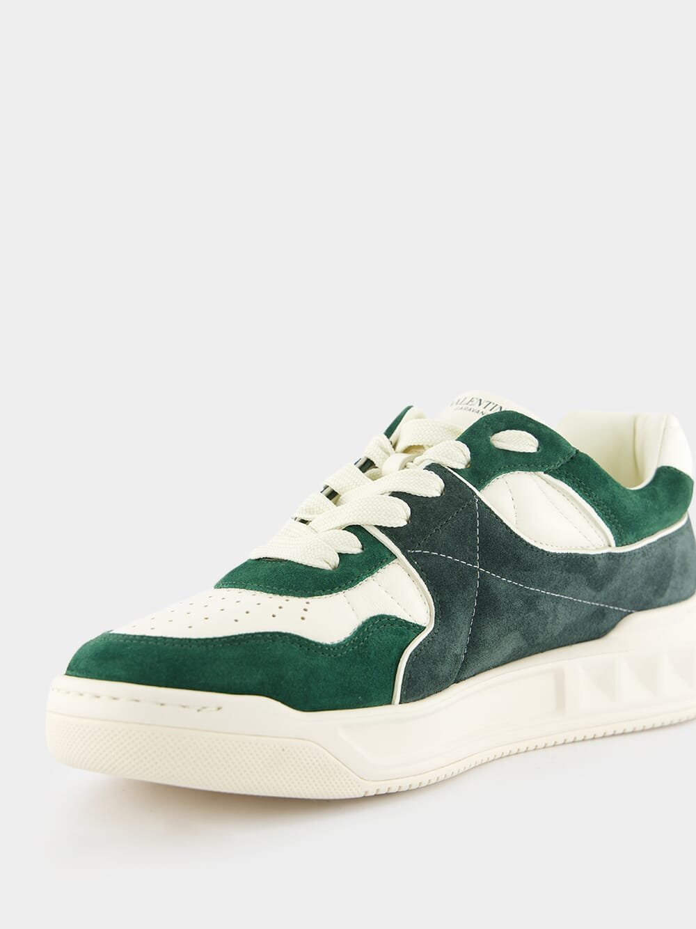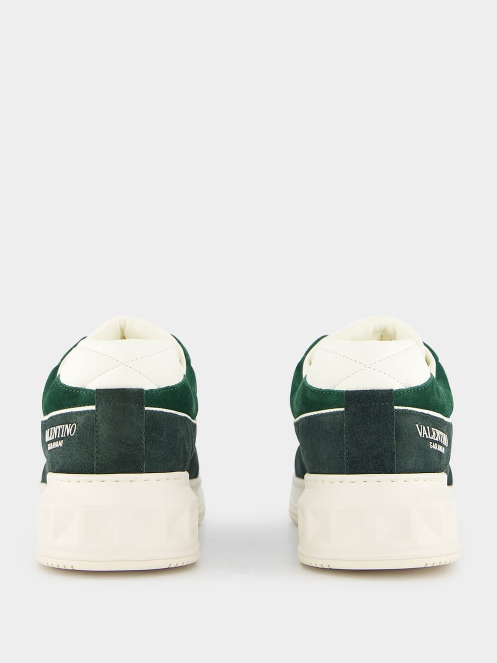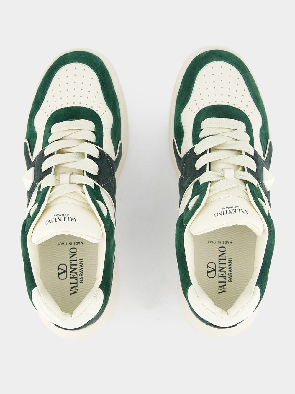 One Stud Logo-Print Sneakers, crafted from premium calf leather and calf suede, these sneakers feature a dynamic panelled design with a perforated toebox. The iconic logo print adorns both the side and tongue, while the contrasting heel counter adds a striking detail. Designed with a round toe and front lace-up fastening, they ensure a comfortable fit. Complete with a branded insole and flat rubber sole, these sneakers offer unparalleled style and comfort.