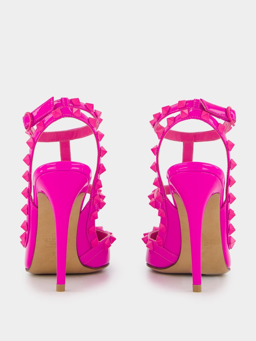 Rockstud 100mm Ankle-Strap Pumps, crafted from exquisite calf leather with a patent finish, these pumps exude luxury. The tonal design seamlessly blends with the signature Rockstud embellishment for a timeless look. Featuring a pointed toe for an elegant silhouette, and a secure buckle-fastening ankle strap, these pumps offer both grace and stability. Elevate your fashion game with the stunning 100mm stiletto heel that adds height and allure to any outfit.