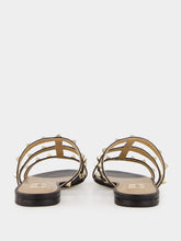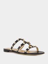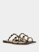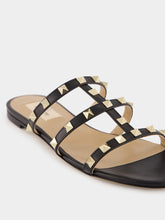 The Valentino Garavani Rockstud flat slide sandals offer a chic blend of elegance and edge. Crafted from premium black calfskin leather, these sandals feature Valentino’s iconic platinum-finish pyramid studs adorning the straps, giving them a distinctive look. Designed with a low-profile 5 mm heel, they are perfect for all-day comfort without sacrificing style. Made in Italy, these sandals embody timeless sophistication and can effortlessly elevate any casual or smart-casual outfit.