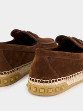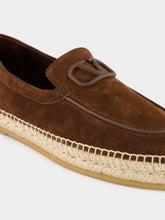 These Valentino Garavani split leather espadrilles are a perfect mix of luxury and casual style. In a rich fondant brown, they feature the iconic VLogo Signature with a tone-on-tone finish, adding a refined yet understated detail. The sole, crafted from custom rope and rubber, is accented with signature stud detailing, offering both comfort and a distinctive touch. Perfect for casual summer days or relaxed social gatherings, these espadrilles combine artisanal craftsmanship with effortless elegance.