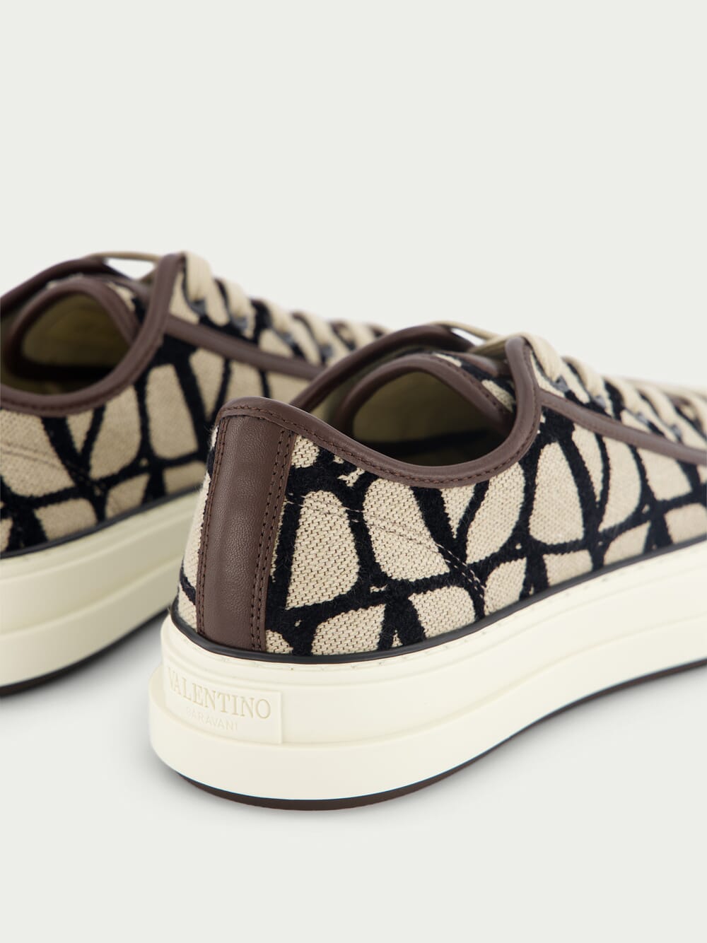 Toile Iconographe Totaloop low-top sneakers, crafted with a monogram pattern and leather trim, these sneakers exude luxury and sophistication. With a front lace-up fastening and round toe, they offer both a secure fit and trendy appeal. The flat rubber sole ensures all-day comfort, while the branded heel counter adds a touch of authenticity. Complete your look with the logo at the sole, showcasing the brand's iconic design.